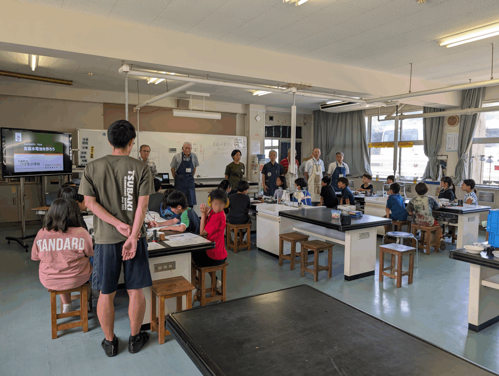 伊豆大島には3つの小学校があり、私たちは毎年1校ずつを順番に訪問し、理科実験授業を継続的に実施しています。今年度はつばき小学校を訪れ、3年生から6年生までの児童を対象に、学年に応じた内容で実施しました。