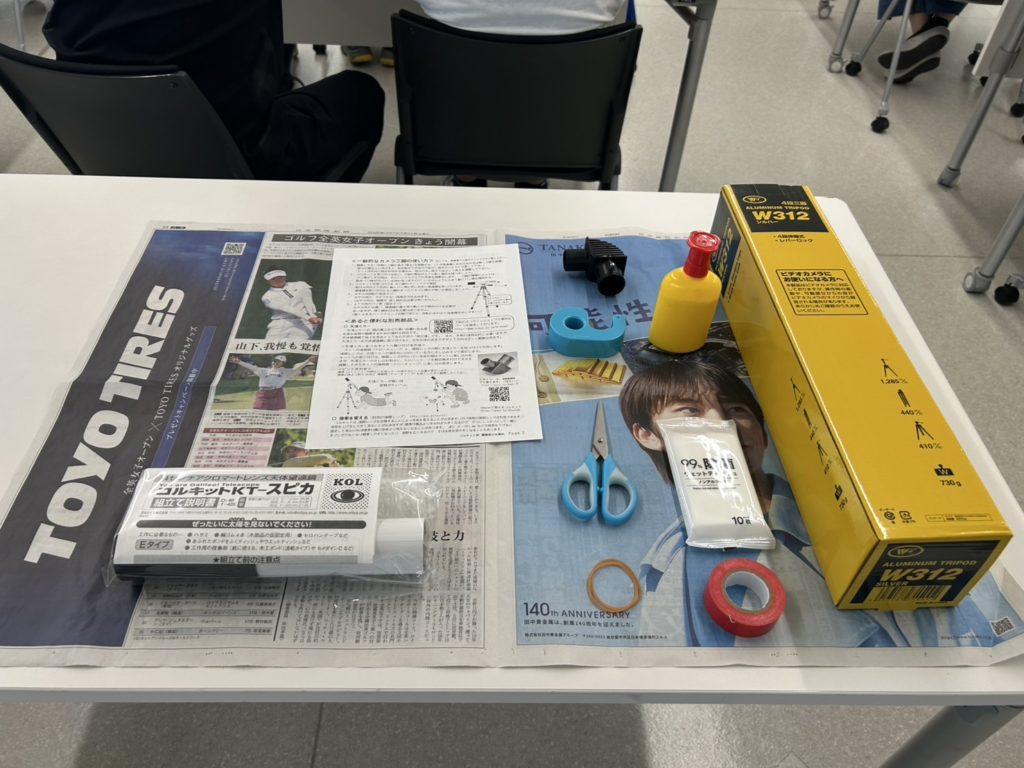 その後、いよいよ、望遠鏡の組み立てです。一家族、一つの机を用意してもらったので広いスペースで、解説書を見ながら、また相談しながら、楽しそうに親子の対話ができていたと思います。組み立てが終わり、いよいよ、焦点合わせです。いろいろ苦労しながら、やっと焦点が合い、対象物がくっきりと見えた時の子供の笑顔はいつみても楽しいものです。