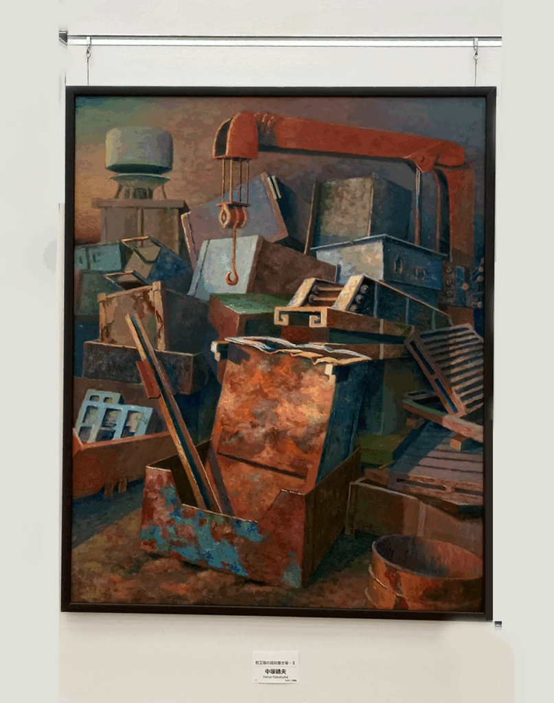 作品タイトルは「町工場の資財置き場―Ⅱ」ですが、使い古した機材、資材の雰囲気を巧みに表現した中塚さんらしい大変素晴しい作品です。