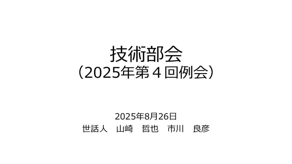 1. 技術部会の実施状況・今後の予定の報告 (山崎哲也会員)