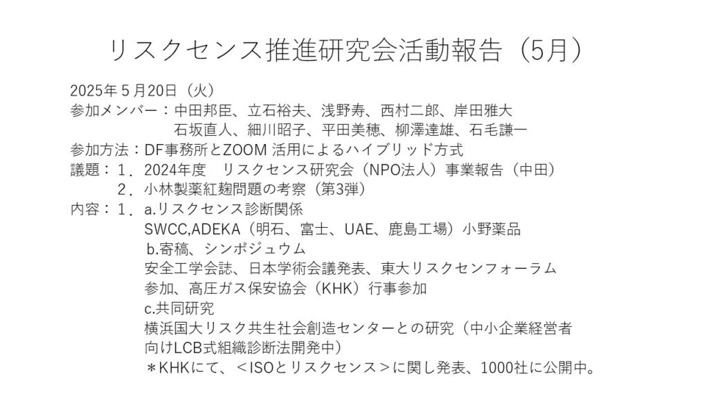 3. リスクセンス推進研究会の報告 (石毛謙一会員)