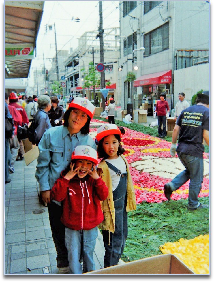 結局、富山県砺波市のチューリップ花弁の提供や神戸芸術工科大学の先生・生徒の技術協力など多くの人々の協力を得て、平成9年春から北野も含めて第1回としてスタートすることができた。今では、元町商店街、ポートアイランド、湊川商店街、六甲アイランドも加えて、市内 6 カ所で開催され、すっかり春の風物詩として定着した感がある。
