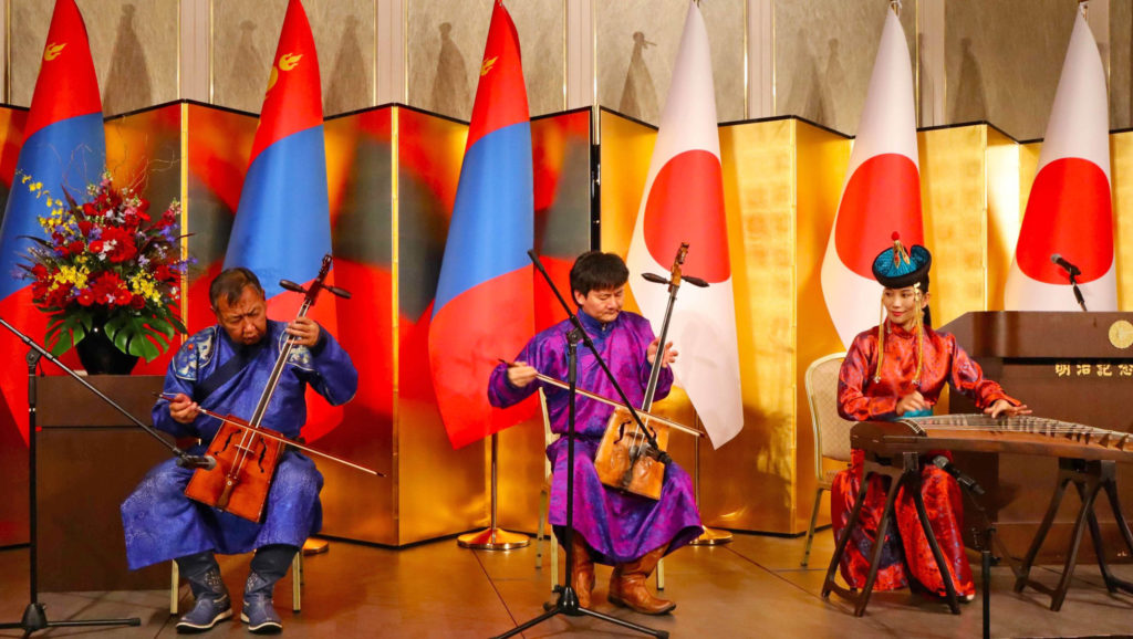 元横綱白鵬も登場、総参加者数750名、モンゴルの伝統音楽演奏もあり、とても盛大な会となりました。モンゴルは人口354万人(横浜市よりも少ない)、産業は鉱物と畜産、ロシアと中国に囲まれ、国の運営は難しい状況です。今回も両国間は「平和と繁栄のための特別な戦略的パートナー」としてゆるぎない信頼関係にあると互いに強調していました。