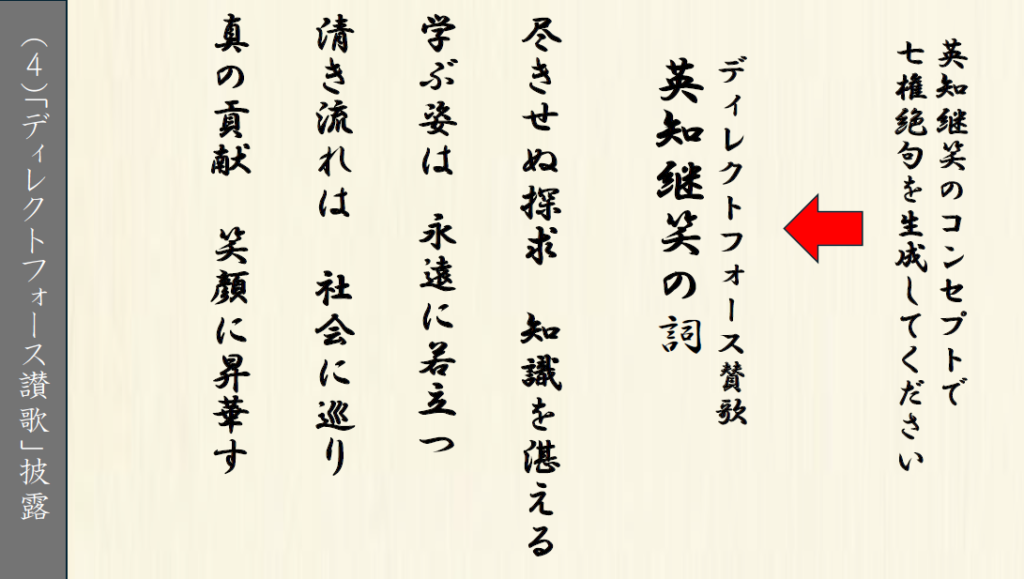 また、ディレクトフォース賛歌「英知継笑の詞」を作曲され、披露されました。
