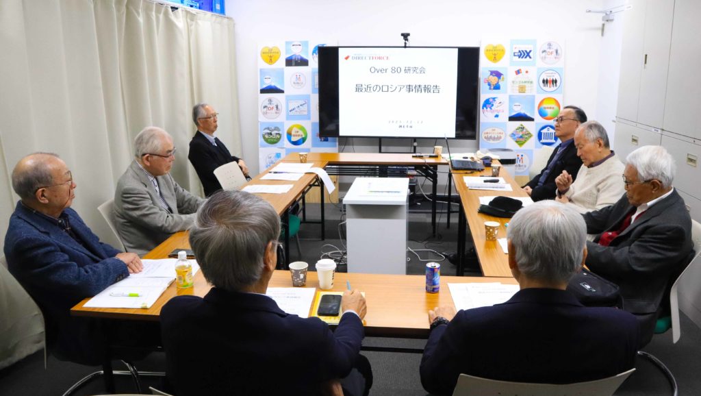 第43回OVER80安全保障問題分科会が、朝妻さんの「最近のロシア事情報告」をテーマに時事討論会として2025年12月11日(木)10:30~12:20スタジオ751で、続いて懇親会兼忘年会が12:30~14:30新橋亭にて、9名の出席者を得て開催されました。