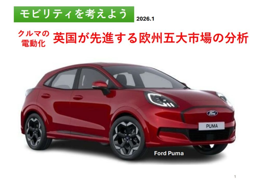 山崎雅史会員から「クルマの電動化 英国が先進する欧州五大市場の分析」のレポートと動画を頂きました。山崎会員は毎月のように自動車業界の分析を発表されていますが、今回は電動化が急減速している欧州で英国が順調に進んでいる、という事実を数値と図表で定量的にわかりやすく分析しています。以下レポートをぜひご覧ください。