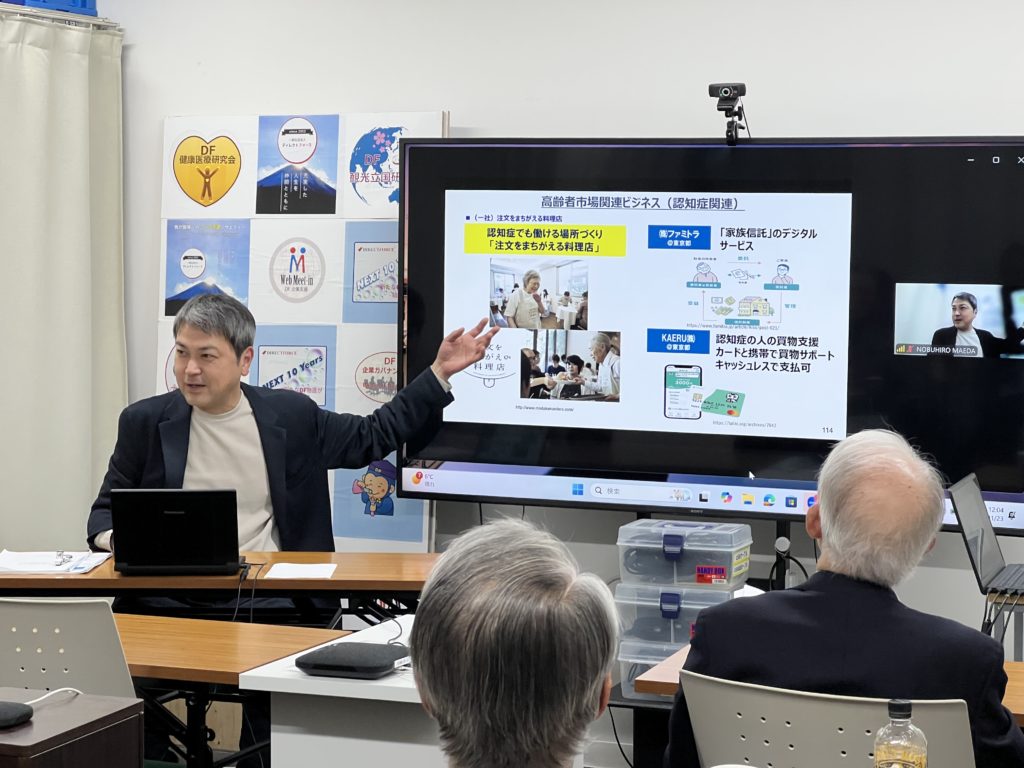 このほかにも関連する質問がいくつかありましたが、生涯現役社会づくのテーマは、DFメンバーにとっても大きな関心事だったのか、DF本部会議室への現場参加、Zoomでの参加を含め50人強の方々が参加されました。DFメンバーの関心度の高さがうかがえる研究会会合だった、と言えそうです。