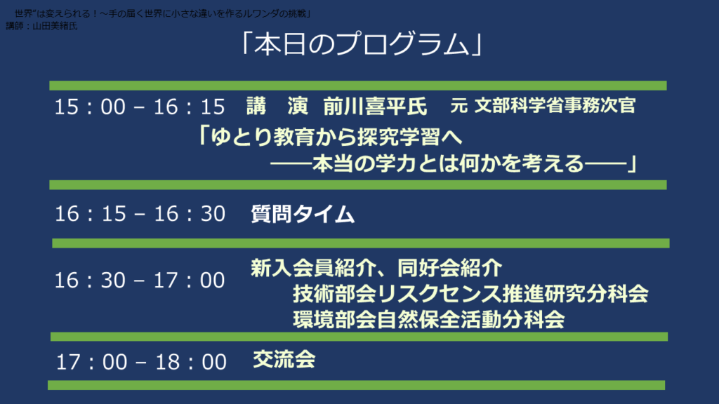 | 講 演 | 「ゆとり教育から探究学習へ ~本当の学力とは何か考える」 |