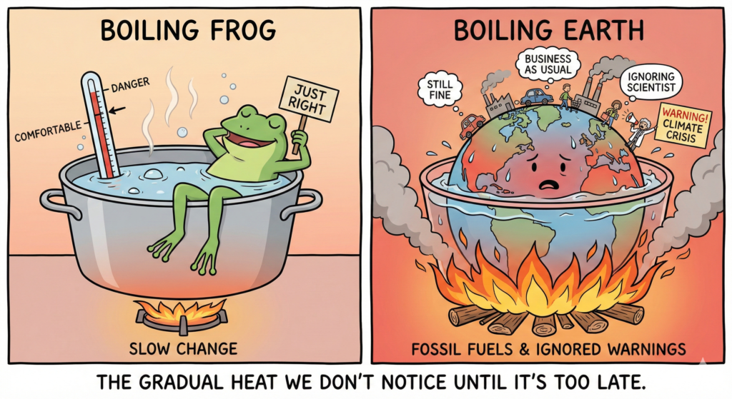 地球は、「気候変動」という「ゆで釜」に入っているゆでガエルか?