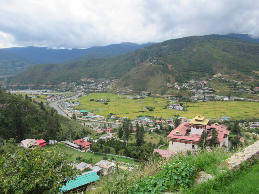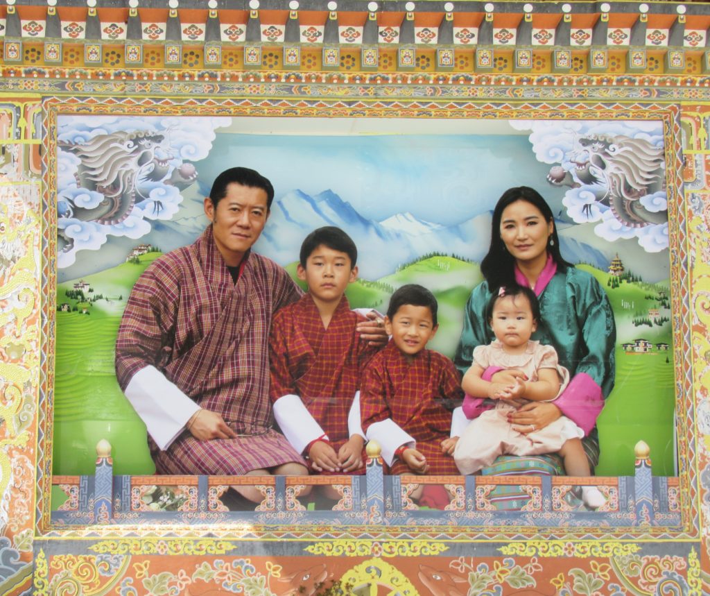 ブータンは立憲君主制の王国、細長い渓谷にあるパロ国際空港に降り立つと現在の5代ワンチェック国王一家の壁画が来訪者を温かく迎えてくれる。国王一家自らが地味で質素な生活を重んじており、中道の教え・考え方を世界にPRしている。「幸せの国」と呼ばれる由来は、ブータン政府が導入したGNH(Gross National Happiness国民総幸福量)という制度であり、4つの指標【①経済成長と開発、②文化遺産の保護と伝統文化の継承・振興、③豊かな自然環境保全と持続可能な利用、④良き統治】に基づき、数年ごとに無作為に抽出した国民に148の質問を行い、その結果を数値化して「幸福度」を検証している。