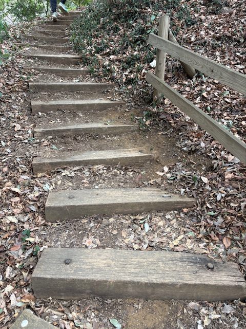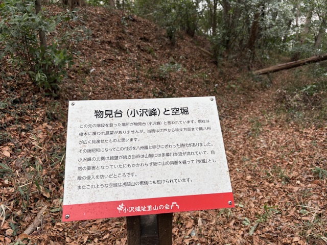 遊歩道全般に堅牢な枕木の階段を市が整備したそうで、大変歩きやすくなっています。また、要所要所には案内板が整備されており、現在地を把握できるしどこに向かっているかも把握できる。そして、鎌倉時代からのお城であることが分かる「空堀」や「物見やぐら」、深井戸などの遺構も説明板が立てられていて、通る人々に歴史の香りを届けている。
