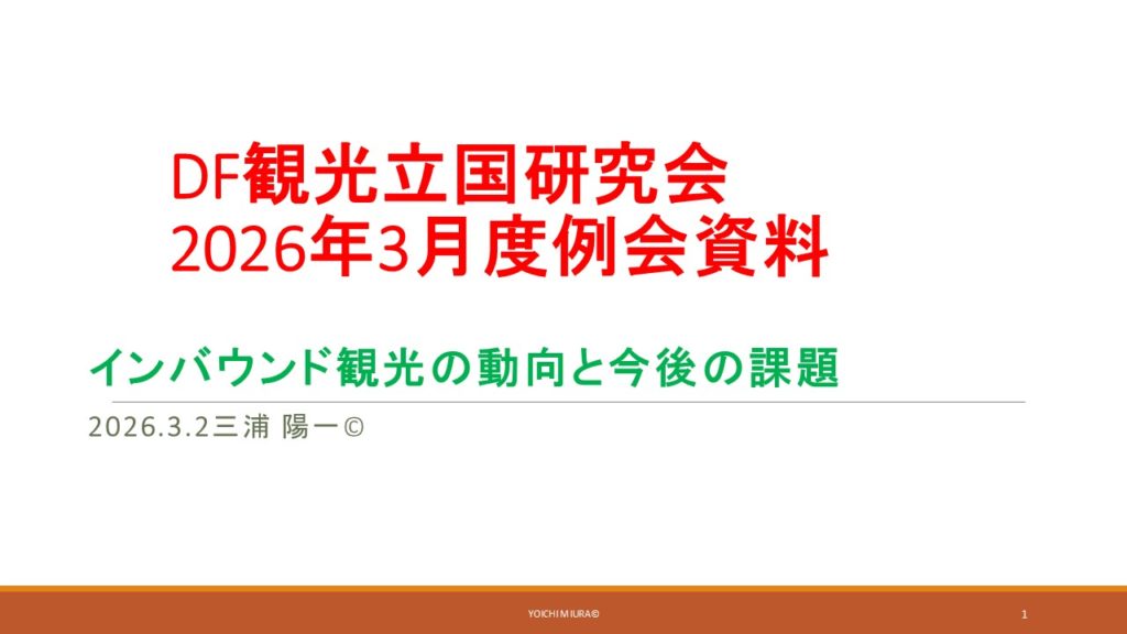 特別報告「インバウンド観光の動向と今後の課題」(三浦陽一会員) 2026年3月2日報告