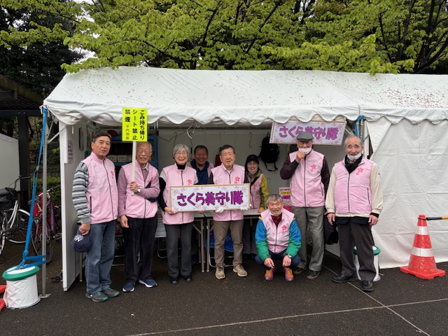 この日は、河井さん、西尾さん、高橋(淳)さん、竹田さん、矢澤さんご夫妻、中西さん、三竿さん、平井の9名が参加しました。その暖かさで7~8分咲きまで来ており、多くの花見客で賑わいましたが、お陰様でゴミもそう目立つほどではありませんでしたが、例年と違って植え込みなどに空き缶が何本か、緑道には外国製たばこの吸い殻が捨ててありました。これはいったい誰の仕業でしょうか?